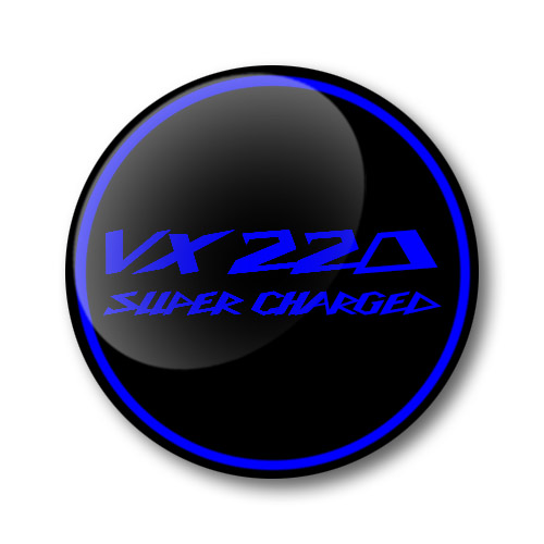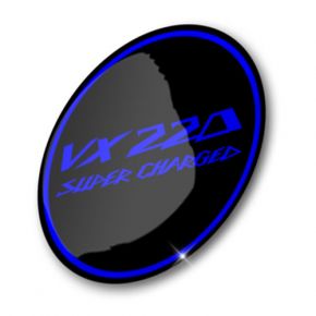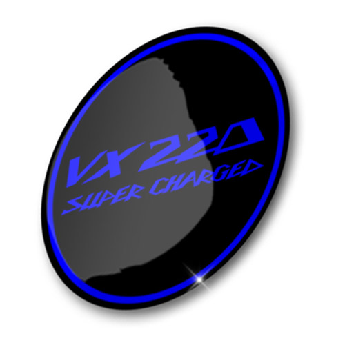 This is a set of 4 luxury aftermarket custom made 3D Domed Gel Permanent Blue on Black VX220 Super Charged alloy wheel center cap badges.